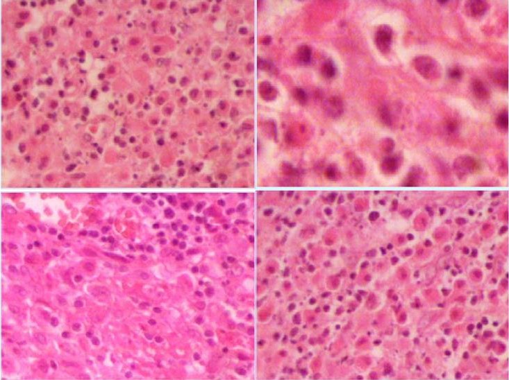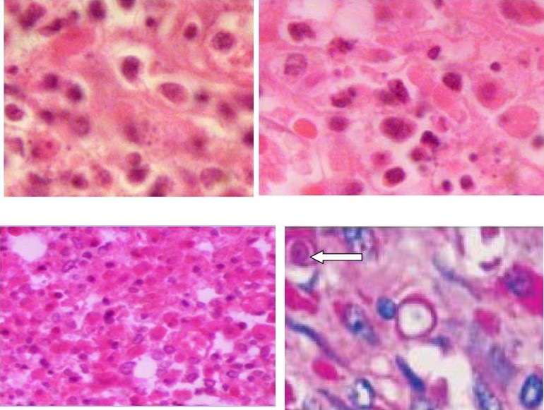 Imagen 3: Imágenes de la microscopía en la que se observan las células de Von Hansenmann y los cuerpos de Michaelis-Gutmann.