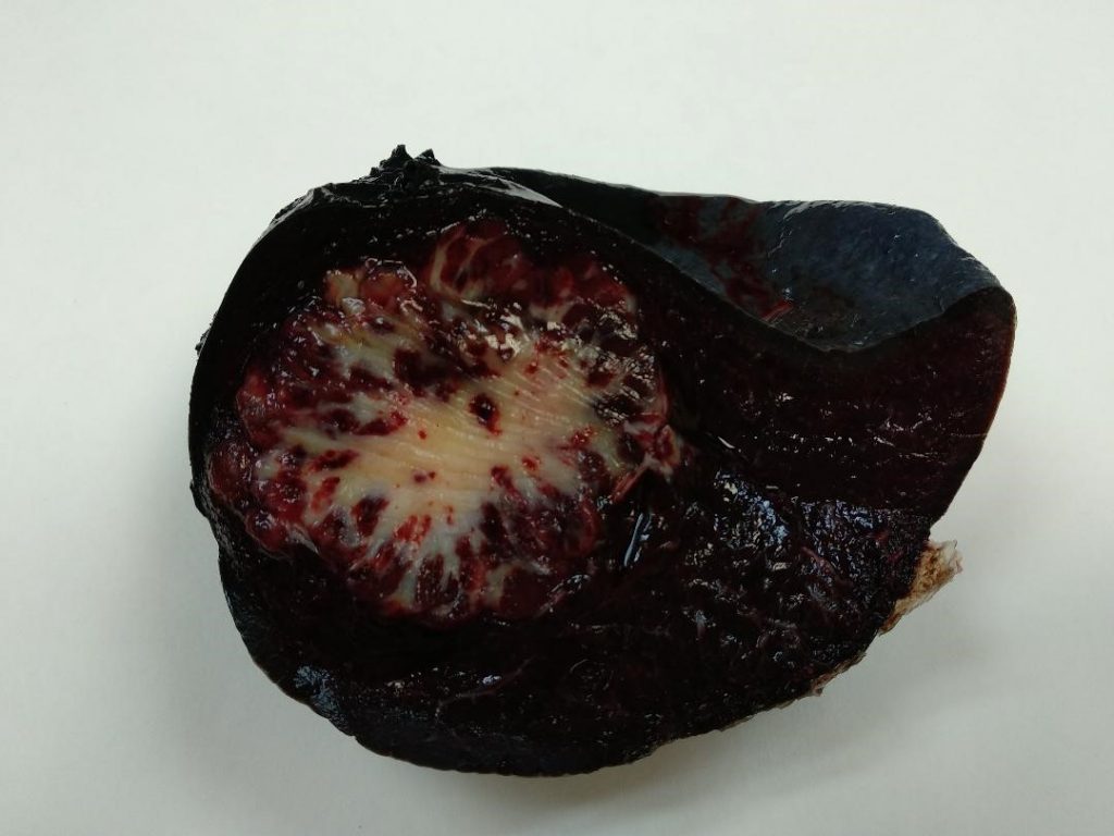Figura 2. Pieza quirúrgica esplenectomía abierta para ver la lesión tipo SANT y su consistencia.