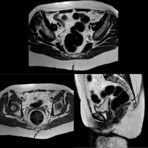 Imagen 3: Resonancia magnética pélvica a los 5 años tras tratamiento que no refleja datos de recidiva tumoral.
