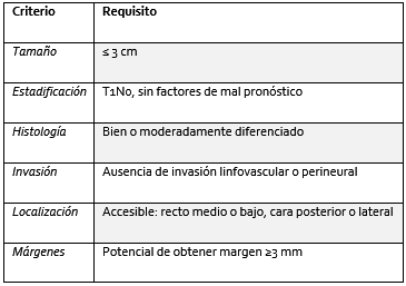 Tabla 2. Criterios de selección para resección transanal con intención curativa